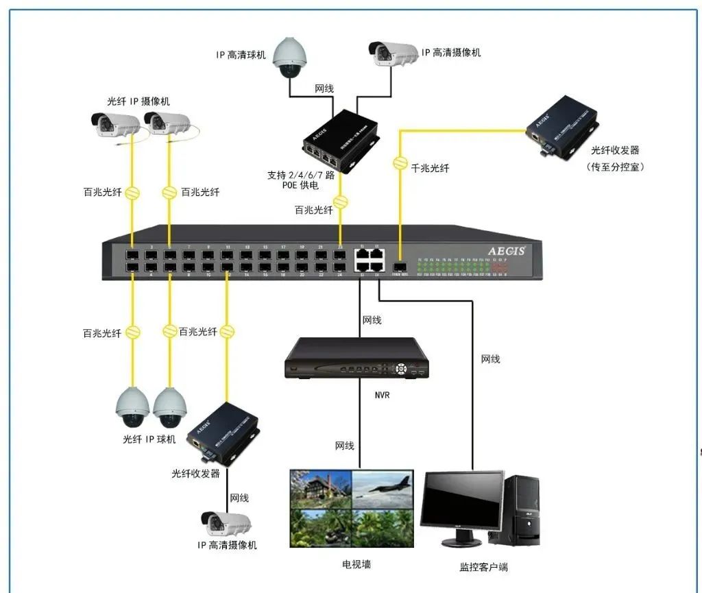 二:POE供電架構(gòu):網(wǎng)絡(luò)攝像機+POE交換機